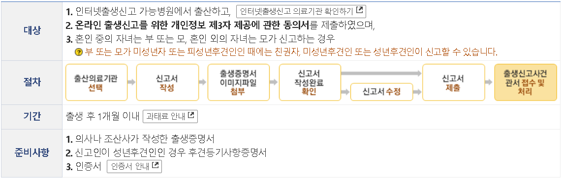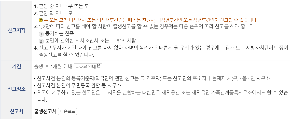 ▶ 출생신고 기간 출산 후 30일 이내로 완료해야 돼요. 늦게 하면 과태료가 발생한답니다.
